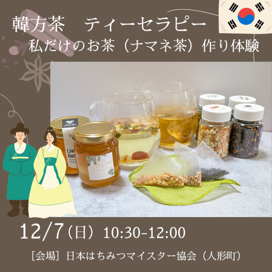 [人形町]12/7(日)10:30〜 韓方茶 ティーセラピー 私だけのお茶(ナマネ茶)作り体験