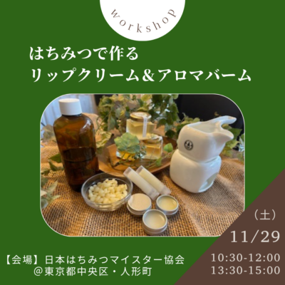 • [11/21(金)17時受付締切]11月29日(土)開催「はちみつで作るリップクリームとアロマバーム」@人形町