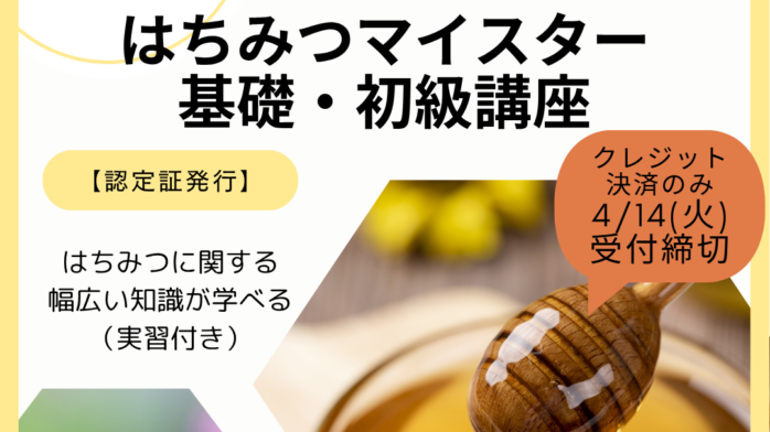 [4/14(火)23時まで受付延長]4月開催・はちみつ資格取得講座