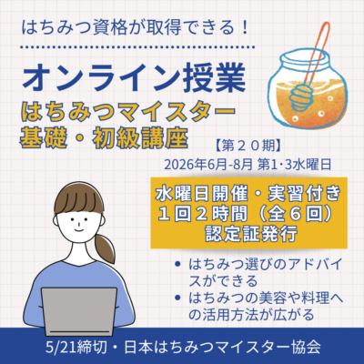 2026年6月より開催のオンラインはちみつ資格取得講座(第20期)水曜日開催の参加者募集中です!