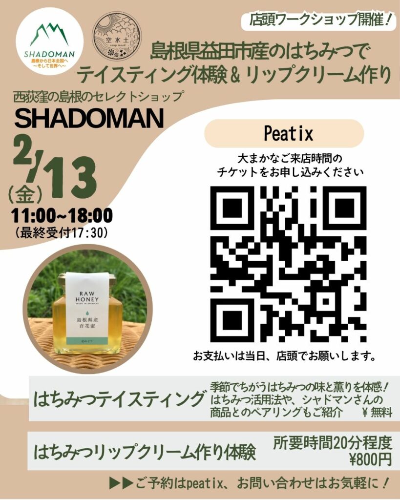 その店頭で、島根県産のはちみつを使った手軽なワークショップを行います。
