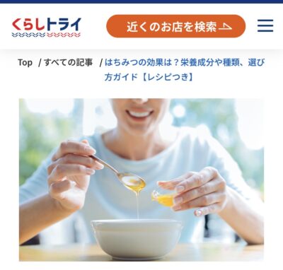 本社が九州にあるスーパー「TRIAL」様が運営するWEBマガジン「くらしトライ」での、はちみつ記事の監修を代表理事の河村が担当しました。